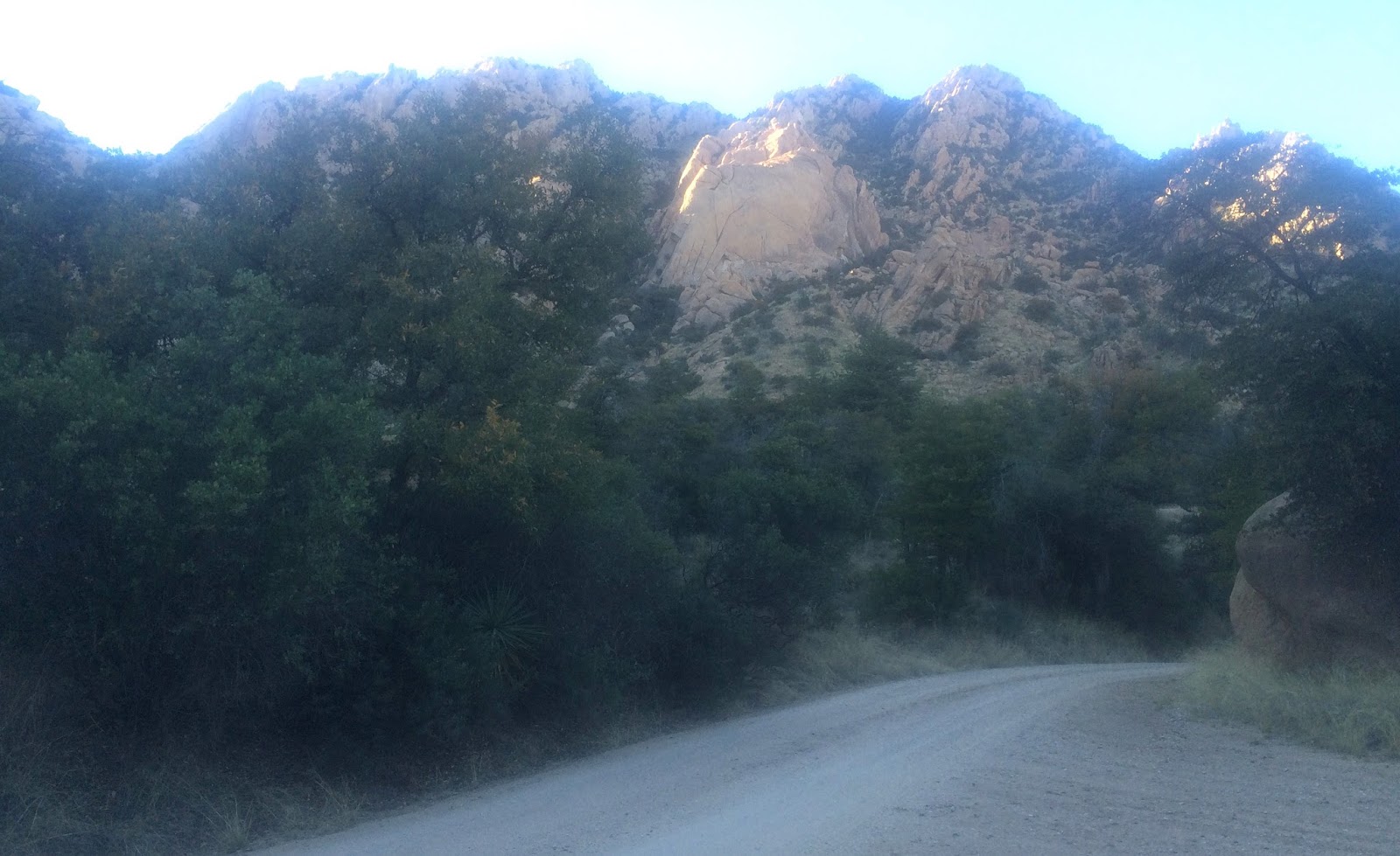 After a visit with Bus, a man who Bob met in Tuscon near Dragoon, we drove up into Cochise Stronghold nearby and caught this view of the evening sun on our way out.